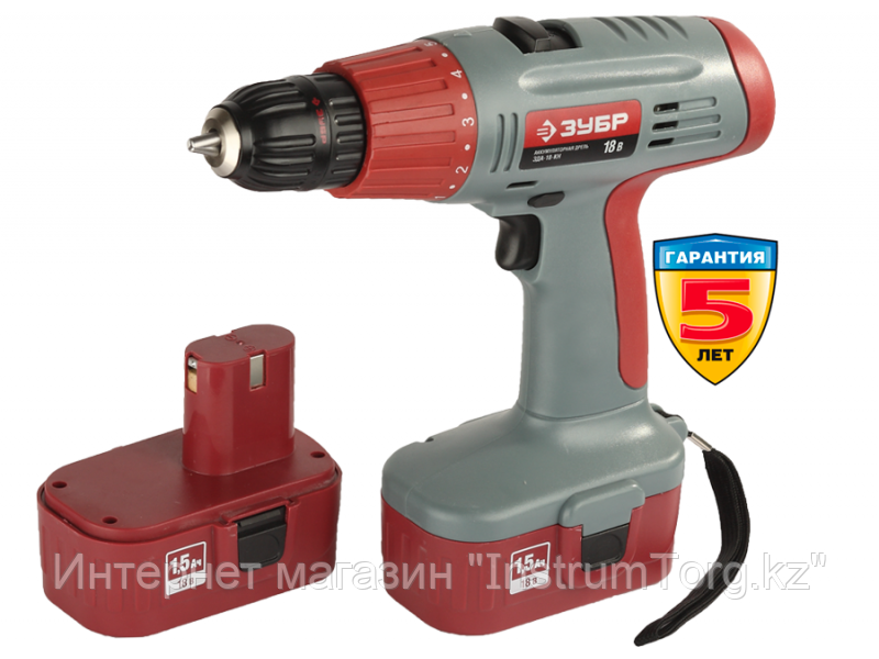 Дрель-шуруповерт ЗУБР аккум, реверс, 10мм, 0-400 и 0-1150об/мин, 1.5А/ч, 18В, доп.аккумулятор, кейс с аксессуарами