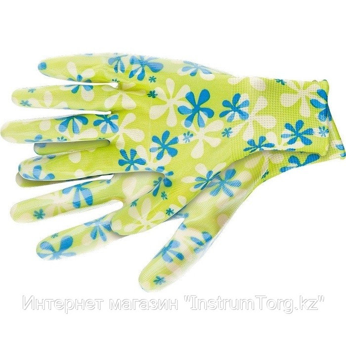 Перчатки садовые из полиэстера с нитрильным обливом, зеленые, L// Palisad