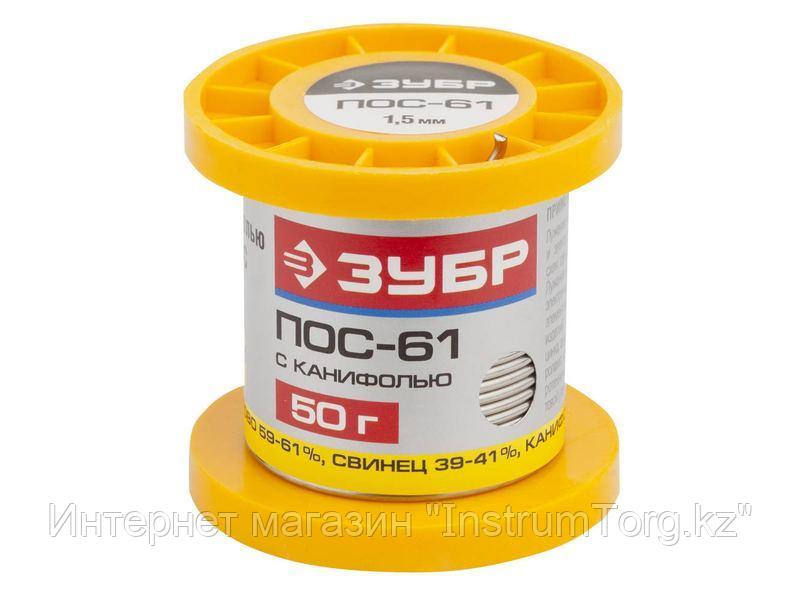 Припой ЗУБР, ПОС 61, трубка с канифолью, 50г, 1,5мм