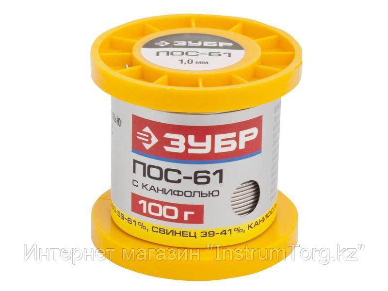 Припой ЗУБР, ПОС 61, трубка с канифолью, 100г, 1мм