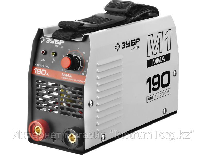 Инвертор ЗУБР “МАСТЕР” сварочный, М1, 190 А, MMA, IGBT, ПВ 30%, принудительный обдув, работа от генератора (мин. 180 В).