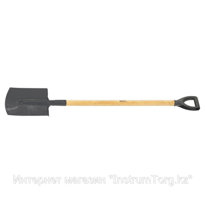 Лопата штыковая, прямоугольная, металлический ковш 410х315 мм, с деревянным черенком высшего сорта и пластиковой рукояткой на конце Предназначена для перекапывания земли, перебрасывания сыпучих материалов, приготовления почвенных и строительных смесей.