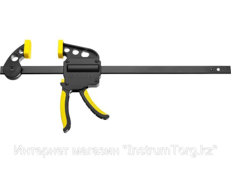 Струбцина STAYER PROFI ручная пистолетная, 300ммПрофессиональная пистолетная струбцина STAYER “MASTER” незаменимый помощник профессионала.Технические характеристики и функцииМатериал корпуса: СтальСжатие: 300 ммРаспор: 480 ммПолное описание, Особенности:Сжатие – 300ммРаспор – 480ммПереставная конструкция с кнопкой быстрой фиксации.Легкий и твердый корпус из армированного полимида.Удобный рычаг – для максимальной фиксации заготовки.Характеристики упаковкиВес: 0,712Длина: 50Высота: 3,2Ширина: 21Гарантия 12 месяцев с момента покупкиСтрана производства: Китай