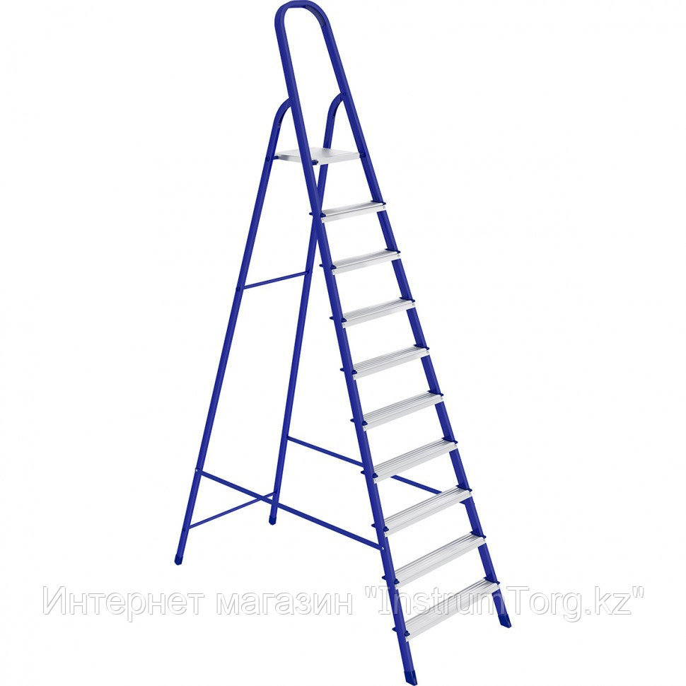 Стальная стремянка за счет прочной и надежной конструкции может применяться как в бытовой, так и в профессиональной деятельности при проведении строительных работ. Стремянка имеет высокий уровень безопасности. Рельефная рабочая поверхность ступеней предотвращает скольжение. Высокая защитная дуга безопасности позволяет работать на максимальной высоте, исключая возможность падения. Прочная страховочная лента удерживает стремянку в рабочем положении. Надежная и прочная конструкция. Широкая ступень. Защитное покрытие стального профиля высококачественной эмалью. Высококачественные материалы обеспечивают прочность и износостойкость. Пластиковые наконечники на основании опорных направляющих предотвращают скольжение на рабочей поверхности и не повреждают покрытие пола. Устойчивость к неблагоприятным внешним воздействиям, коррозии и деформации позволяет увеличить срок использования изделия.
