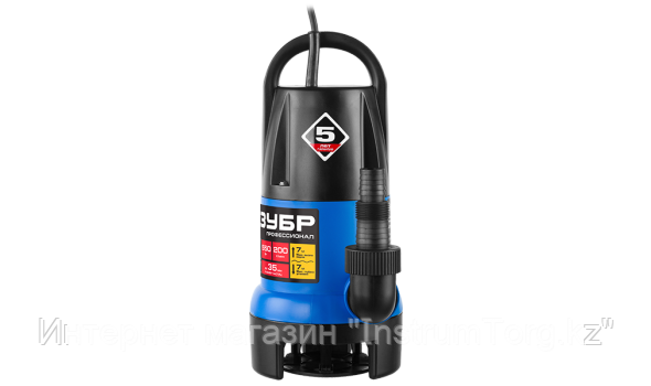 Насос Т7 АкваСенсор погружн, ЗУБР Профессионал НПГ-Т7-550, дренаж. для грязн воды(d частиц до 35мм),550Вт,датчик уровня,200л/мин,напор 7м,провод 10м