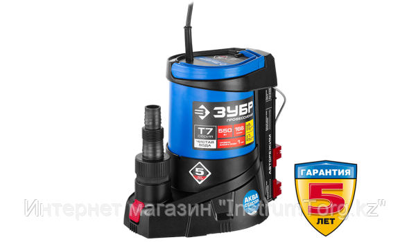 Насос Т7 АкваСенсор погружной, ЗУБР Профессионал НПЧ-Т7-250, дренажный для чистой воды, 250 Вт, мин. уровень 1 мм, 100 л/мин, напор 6 м, провод 10 м