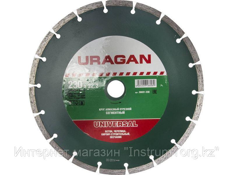 UNIVERSAL 230 мм, диск алмазный отрезной сегментный по бетону, кирпичу, камню, URAGAN
