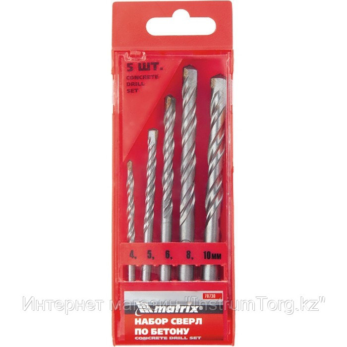 Набор сверл по бетону, 4 - 5 - 6 - 8 - 10мм, пластиковый кейс// Matrix