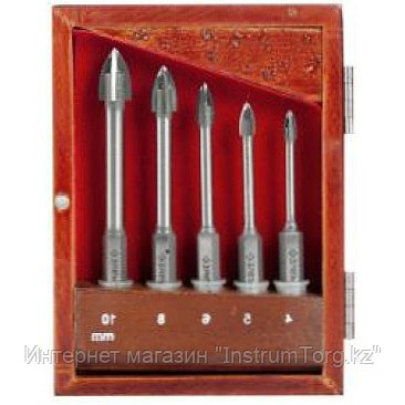 Набор ЗУБР “ЭКСПЕРТ” Сверла по кафелю, керамике, с четырьмя режущими лезвиями 4, 5, 6, 8, 10мм, 5шт